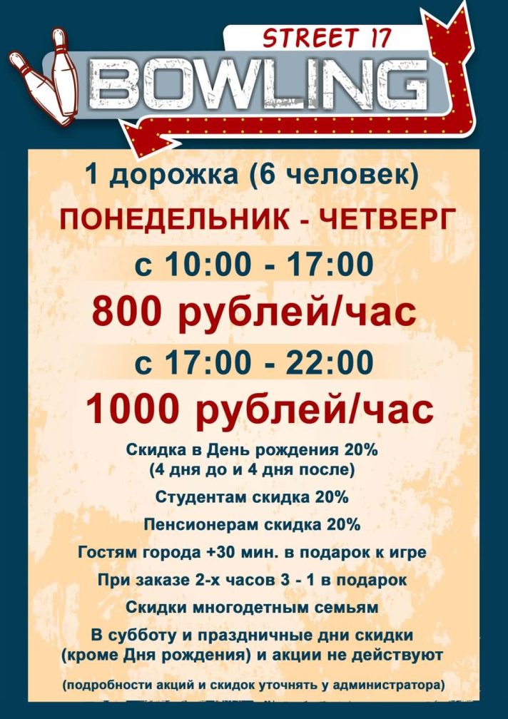 Приходите с друзьями, коллегами, одноклассниками, одногруппниками, всей семьей в Боулинг клуб «STREET 17» ну а оттачивать своё мастерство в бросках и тренироваться можно даже в одиночку, было бы желание.